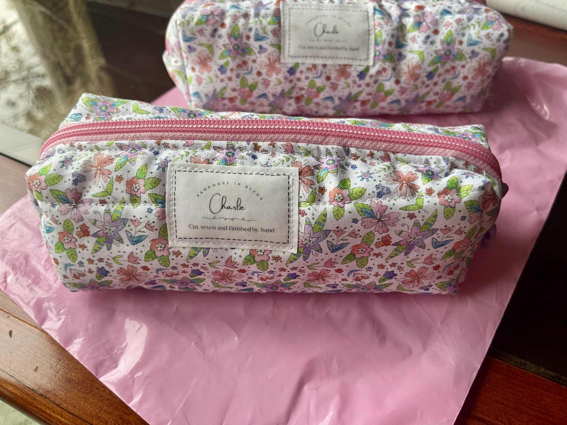This beautiful pencil case can double up as a brushes case to go with your cosmetic bag. Choose a compliementary or the matching fabric to the cosmetic bag.