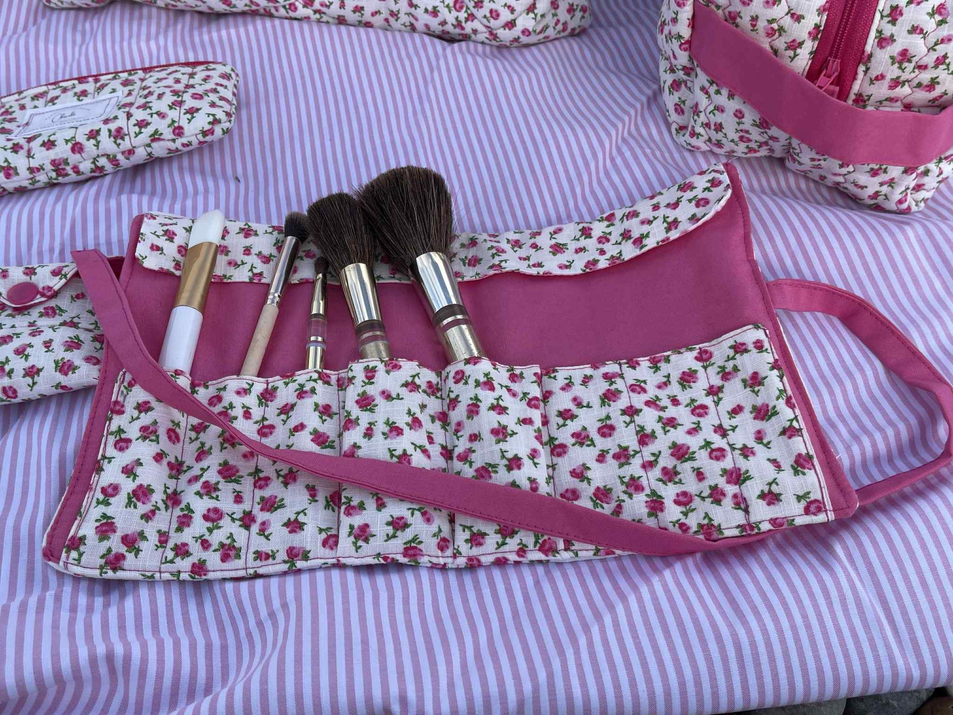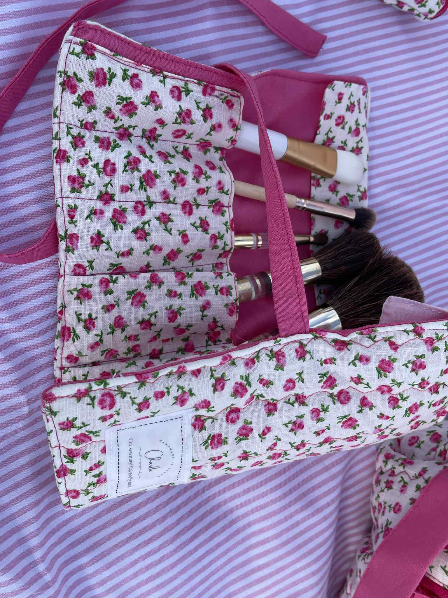 With a fold over flap to keep them from moving and a tie to secure, your brushes can travel in style and safety.