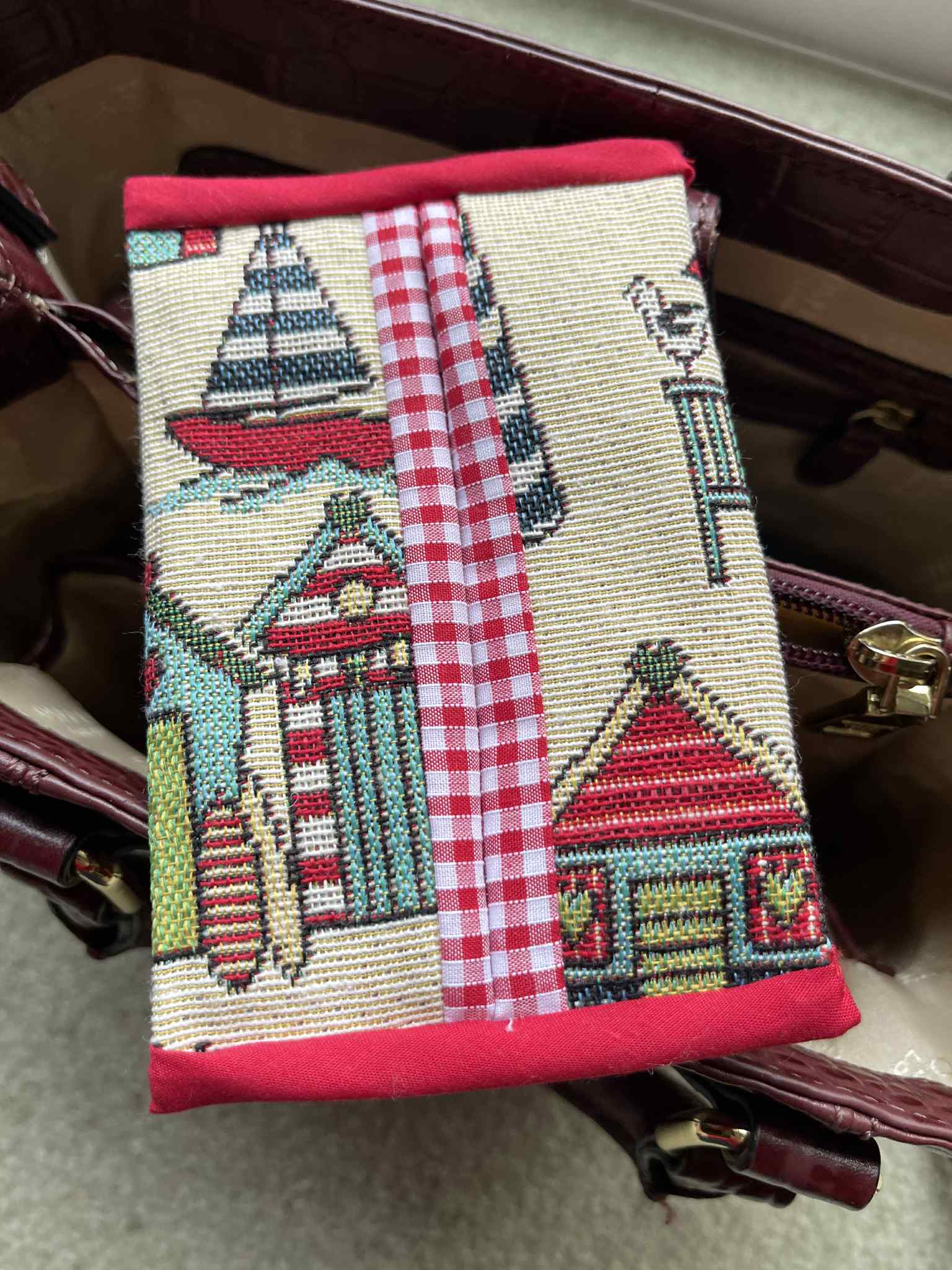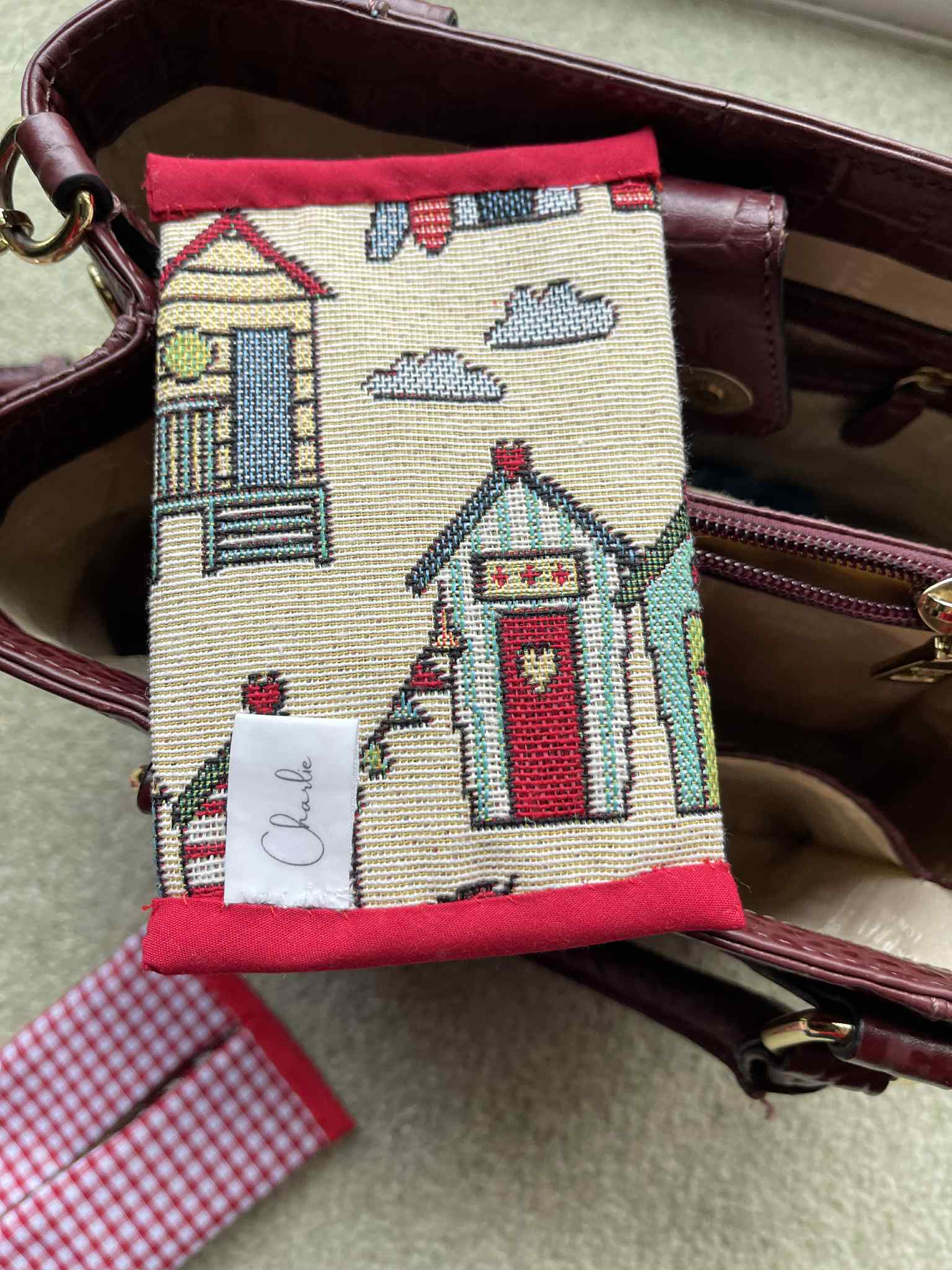 Handy little pouch for storing tissues. Comes in Red Gingham and Beside The Seaside fabric.