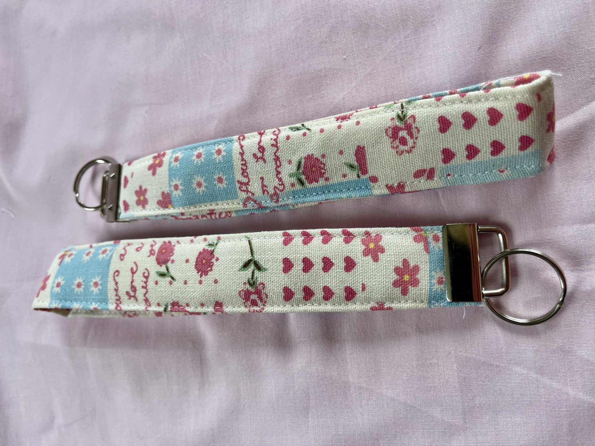 Beautiful padded wristlet to keep your keys handy. Made from 100% cotton, with wadding for a comfortable grip.
